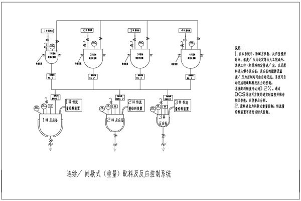 配料系統(tǒng)的種類很多,就包括上面圖片所展示的連續(xù)/間歇式配料系統(tǒng),并且下面,通過圖片來簡單了解配料系統(tǒng)的反應(yīng)控制系統(tǒng),并在旁邊附上一些說明,以便大家理解更加容易。